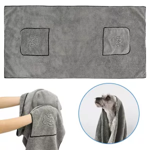 Notre serviette de bain a deux poches, ce qui permet un processus de séchage facile. Vous pouvez insérer vos mains dans les poches pour frotter soigneusement votre animal.