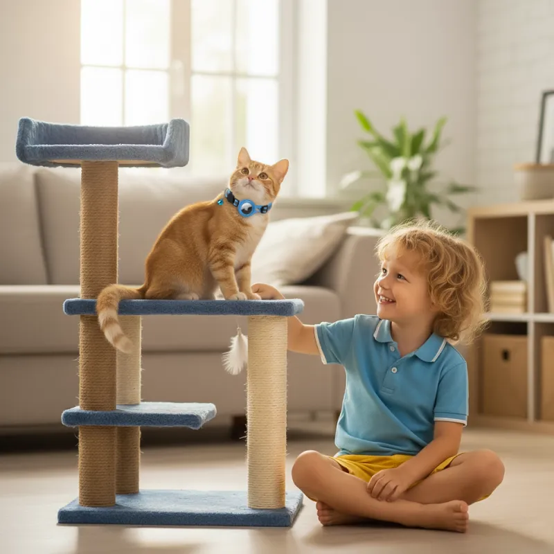 Le traceur reste en place pendant que le chat joue.