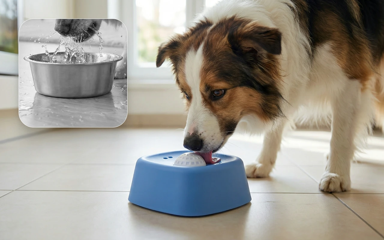 Gamelle d’eau anti-glouton à bille roulante pour chiens