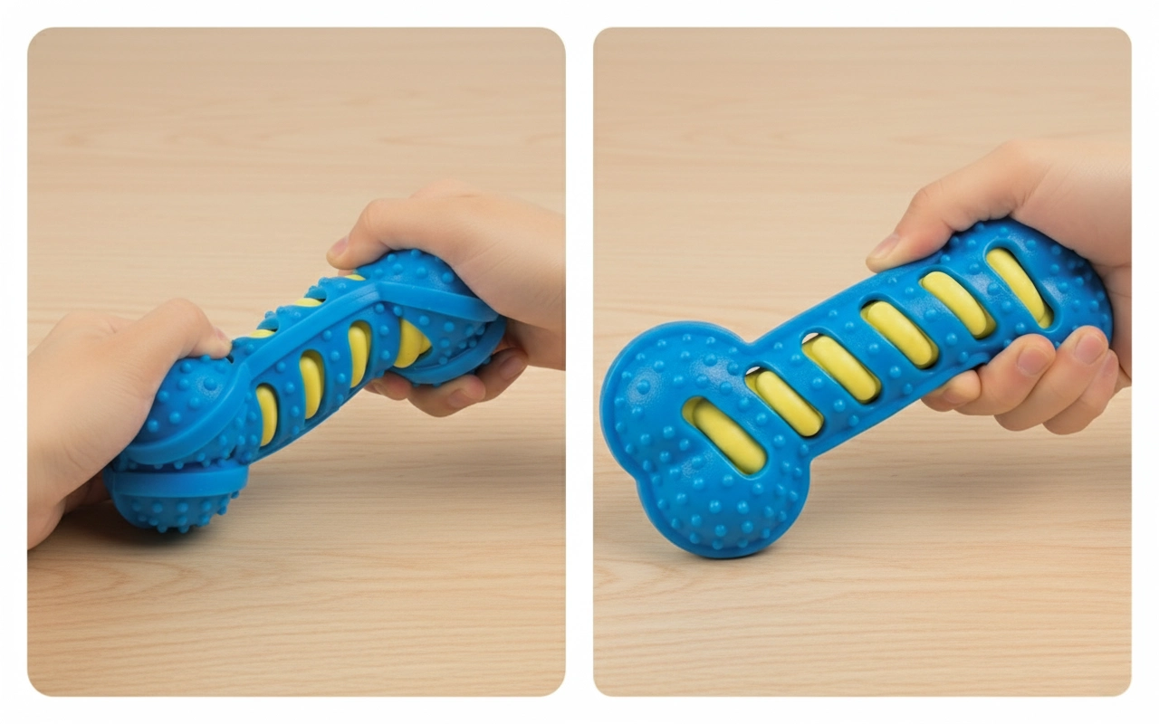 Le caoutchouc durable résiste aux morsures et reste sûr pour le jeu quotidien. Aucun produit chimique nocif n’est présent dans ce design robuste.