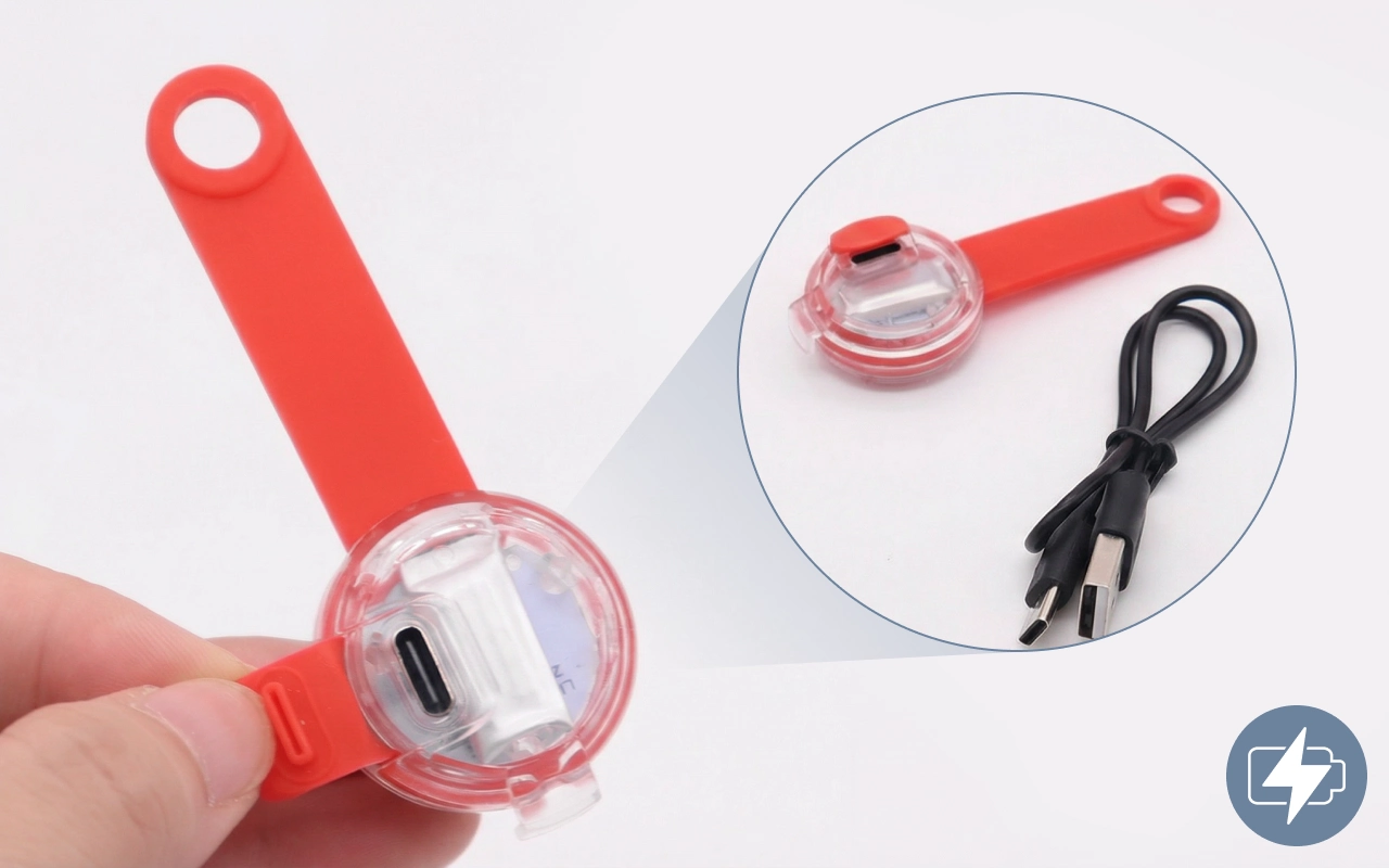 Chargé facilement avec le câble de mon téléphone. Je me sens plus serein lorsqu’on marche près de routes fréquentées après la tombée de la nuit.