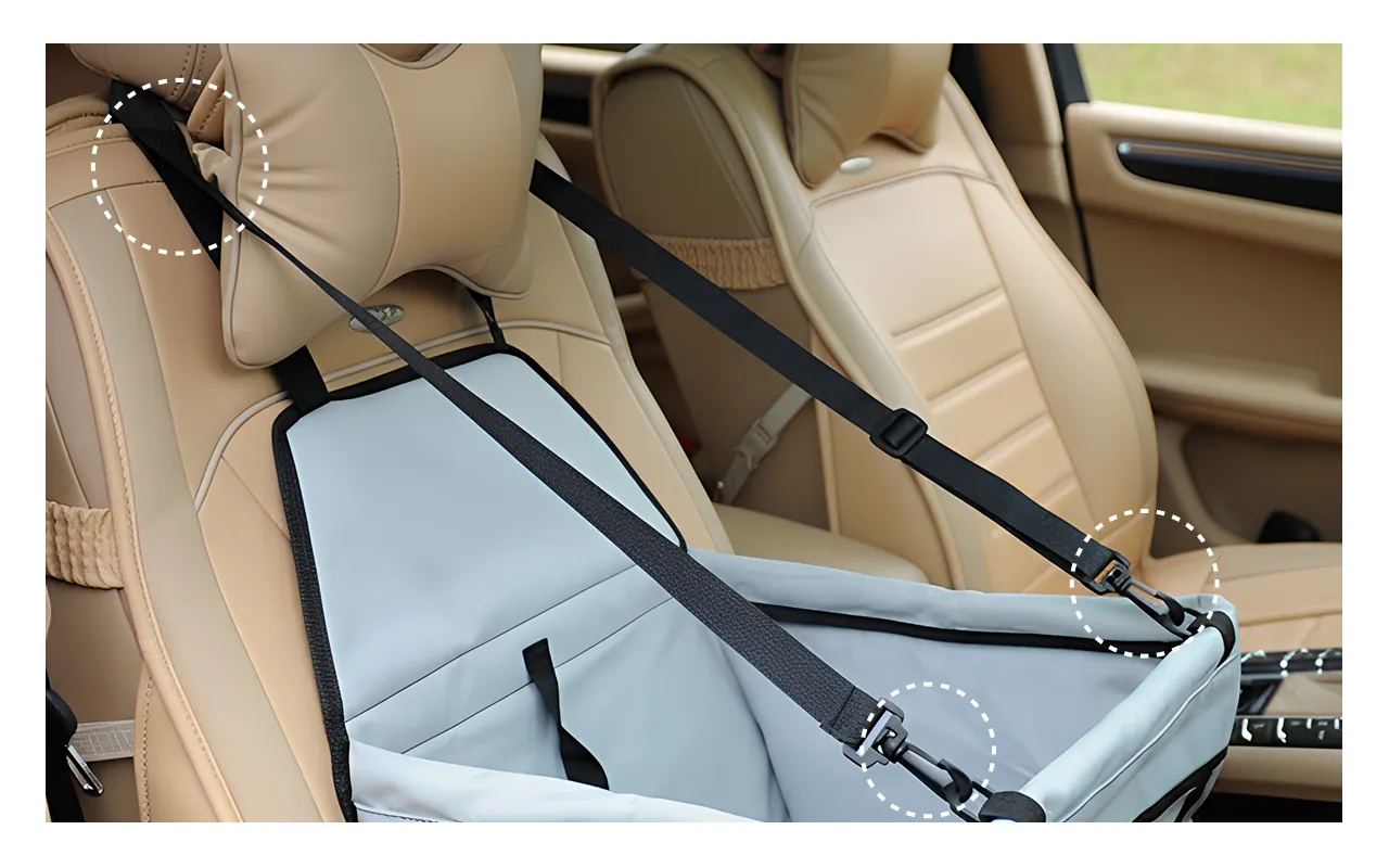 Des sangles solides empêchent le glissement et les mouvements brusques pendant le voyage. Chaque trajet est détendu car votre animal reste protégé.