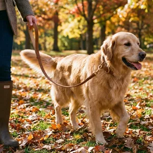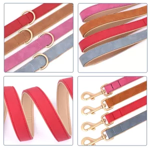 La laisse convient parfaitement et n’est jamais trop serrée. Mon chiot peut courir et jouer, et les clips dorés semblent toujours neufs même après beaucoup d’utilisation.