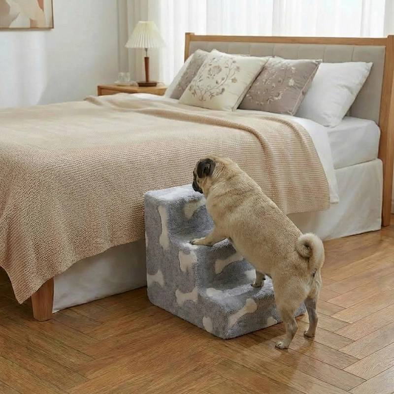 Mon carlin peut enfin monter sur le lit sans que j’aie besoin de l’aider. Les marches sont douces et stables, donc je sais qu’il est en sécurité à chaque fois.