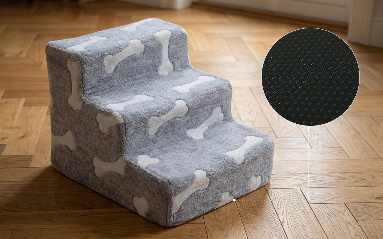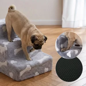 Mon chien s’est blessé à la patte l’an dernier, donc ces marches sont parfaites pour lui. Il monte maintenant sur le canapé sans difficulté et le fond antidérapant maintient tout en place.