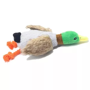 J’adore la forme et la taille de ce jouet canard, parfait pour mon petit chien. Malheureusement, les pattes en corde s’effilochent un peu plus vite que je ne l’espérais.
