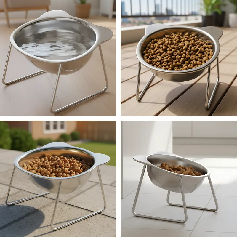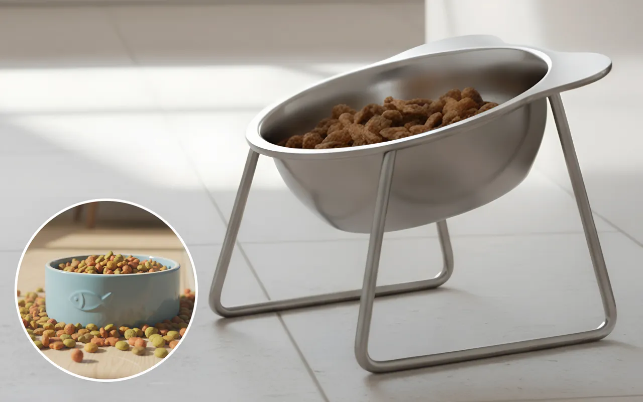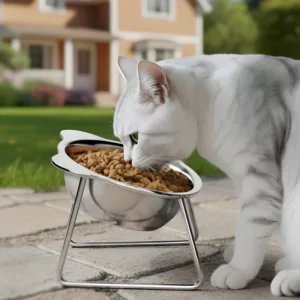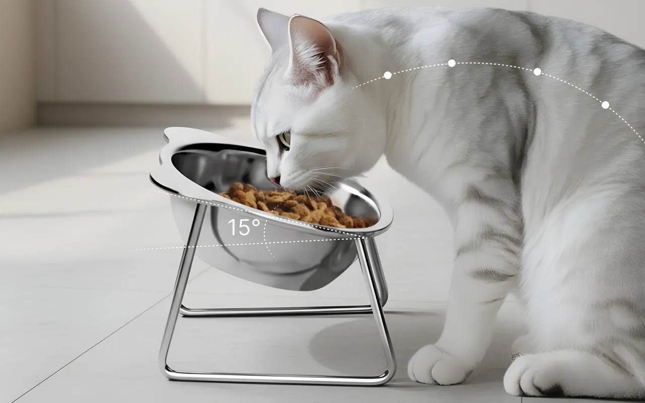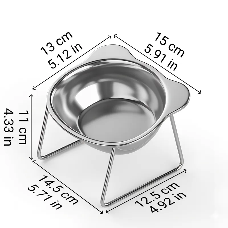 Gamelle inclinée en acier inoxydable pour chat avec support – Mangeoire surélevée pour animaux