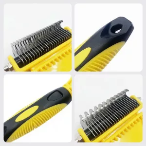 Outil de démêlage et d’élimination des poils pour chien à râteau double face en acier inoxydable