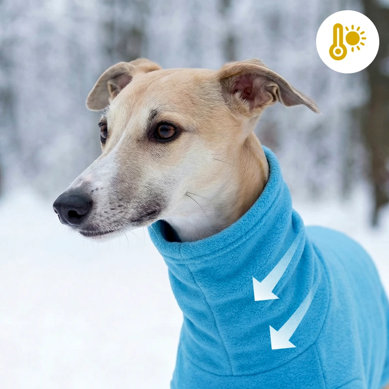 Fini les frissons ! La polaire garde mon chien au chaud et il adore se blottir sur le canapé avec après les promenades.