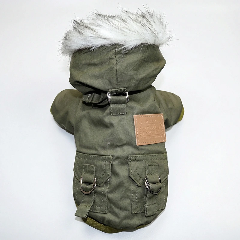 Veste chaude à capuche pour chien Manteau imperméable pour temps froid avec boutons-pression