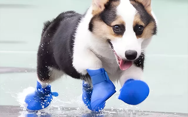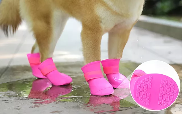 Ces chaussures en caoutchouc aident quand il pleut, donc mon chien ne met pas de boue partout. Elles adhèrent bien aux trottoirs glissants. Je suis vraiment content de cet achat !
