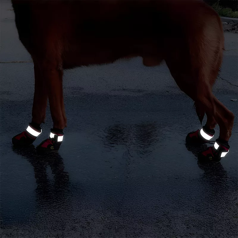 Ces bottes pour chien sont parfaites pour les promenades du soir. Leurs bandes réfléchissantes rendront votre compagnon visible dans des conditions de faible luminosité.