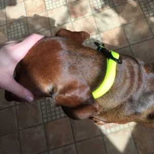 Ce collier est assez pratique avec ses couleurs vives et visibles. Il est facile à attacher aux laisses. La libération rapide est super pratique, bien qu’occasionnellement rigide.