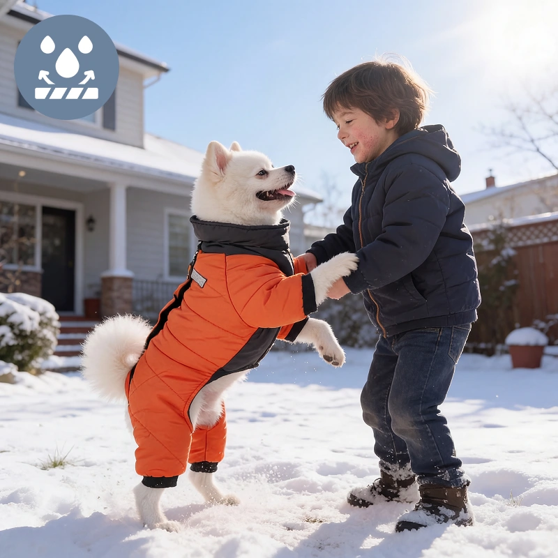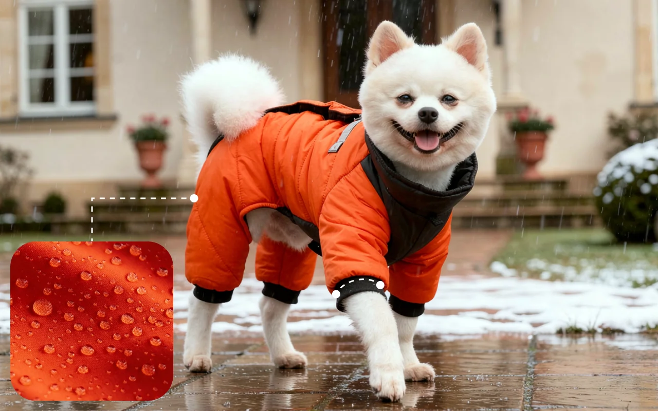 Le tissu imperméable garde le pelage sec même sous la pluie. Les poignets coupe-vent empêchent le froid de passer pour que les aventures continuent.