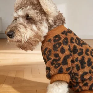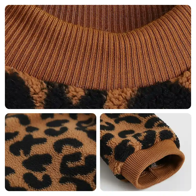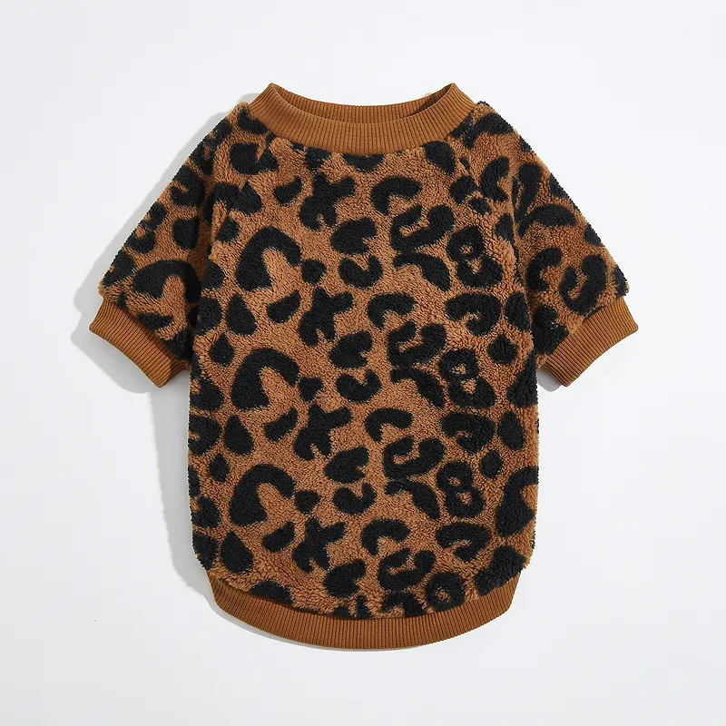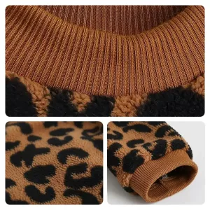 Pull pour chien chaud d’hiver à col rond – Motif léopard mignon
