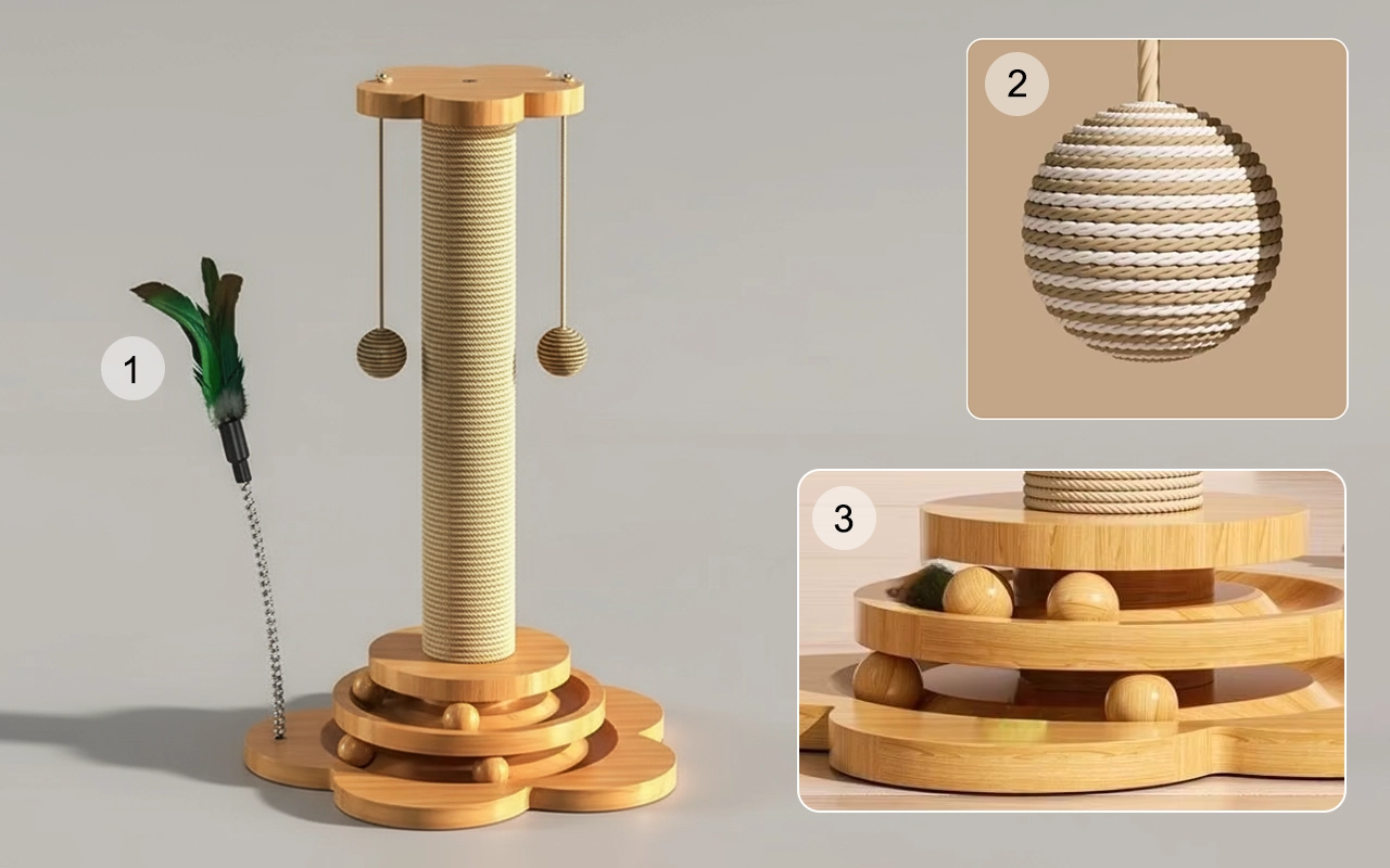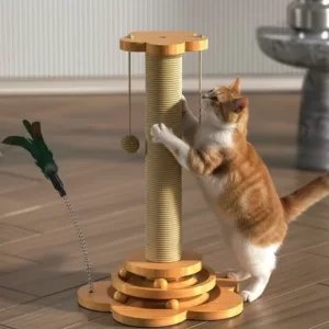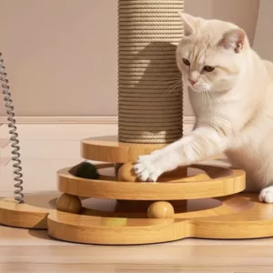 J’ai essayé d’autres griffoirs mais celui-ci est vraiment durable. Les jouets suspendus sont ludiques et faciles à remplacer.